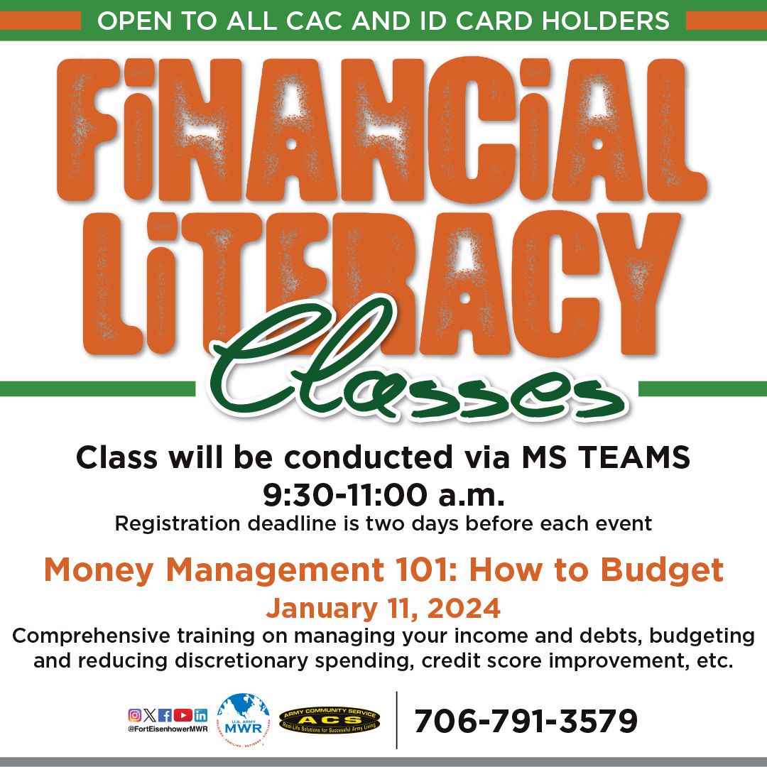 Join Financial Readiness and learn about resources available that may benefit you and your family. The classes will be hosted on MS Teams. The MS Teams link will be received at time of registration. Registration closes two days prior to each class date.