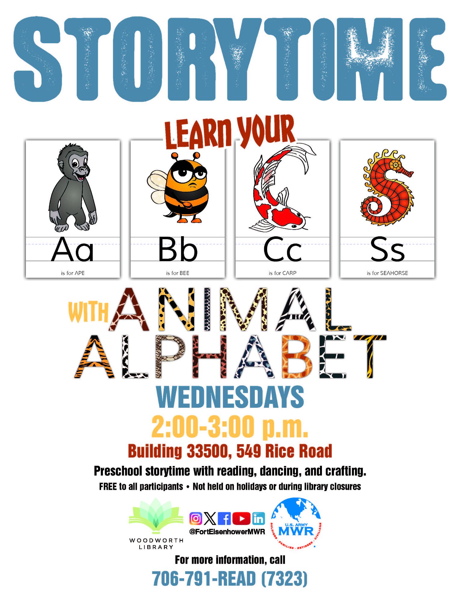 Come explore how fun reading is at Woodworth Library’s Preschool Story Time. This year’s theme is Animal Alphabet.