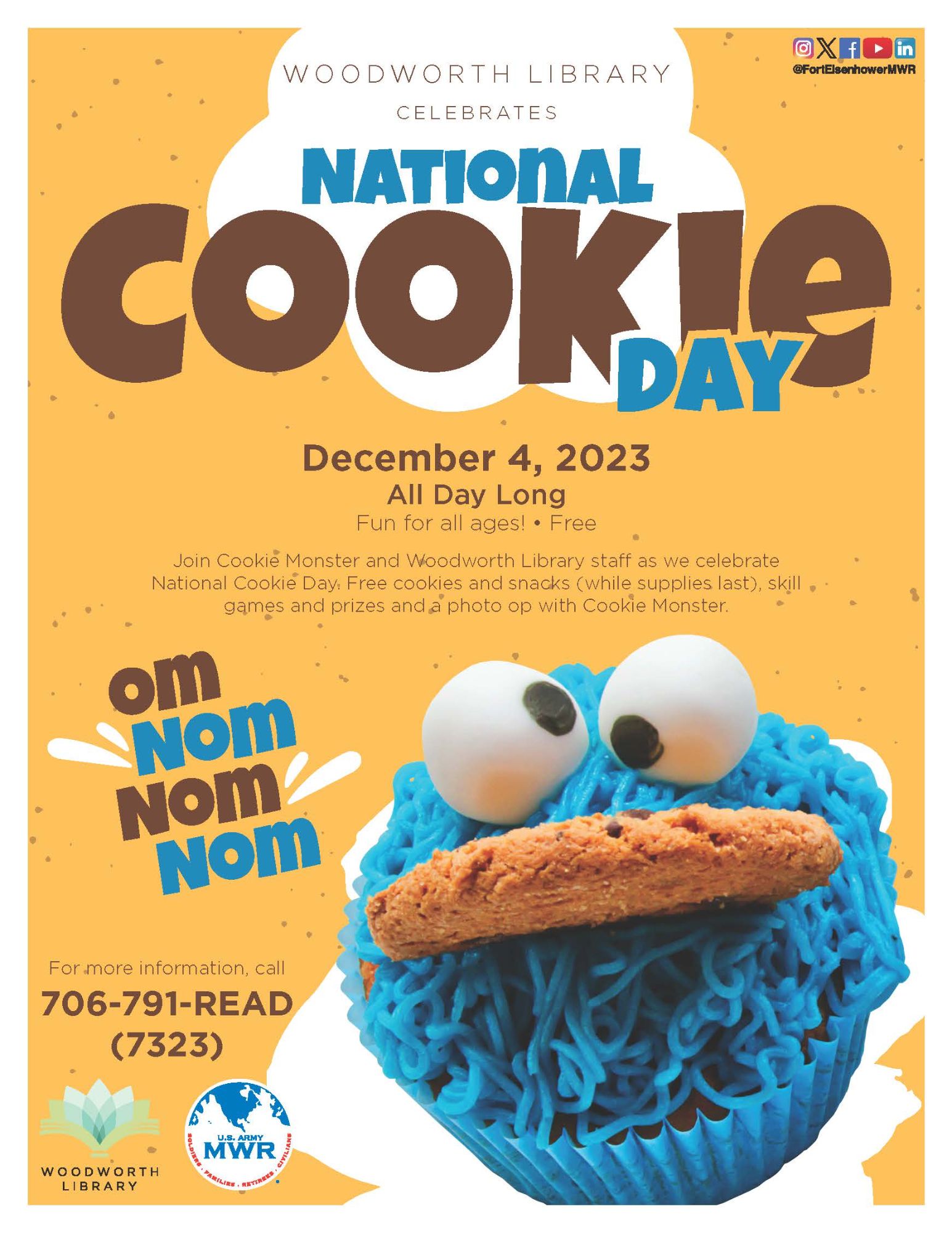 Join Cookie Monster and the Woodworth Library staff as they celebrate National Cookie Day. Enjoy free cookies and snacks (while supplies last), skill games, and prizes. Best of all – don’t miss the opportunity to have your photo taken with the Cookie Monster. This event is sure to be fun for all ages!