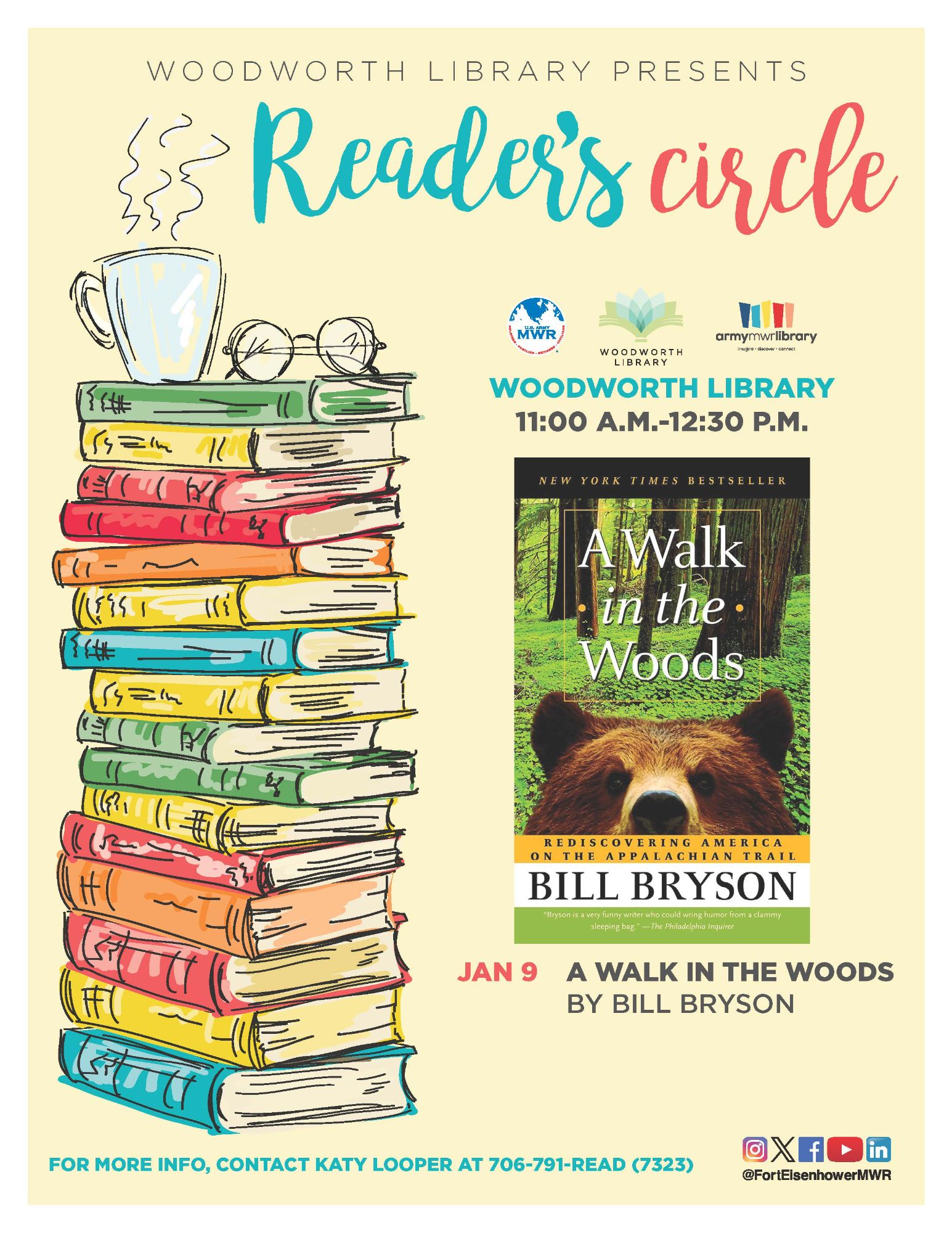 Woodworth Library hosts a mid-day book club for adults called Reader's Circle. Grow your reading shelf with the book of the month as a new title is discussed monthly. Participants are welcome to bring their own brown-bag lunch or snack. Take part in a fun and engaging book discussion and meet new people!
